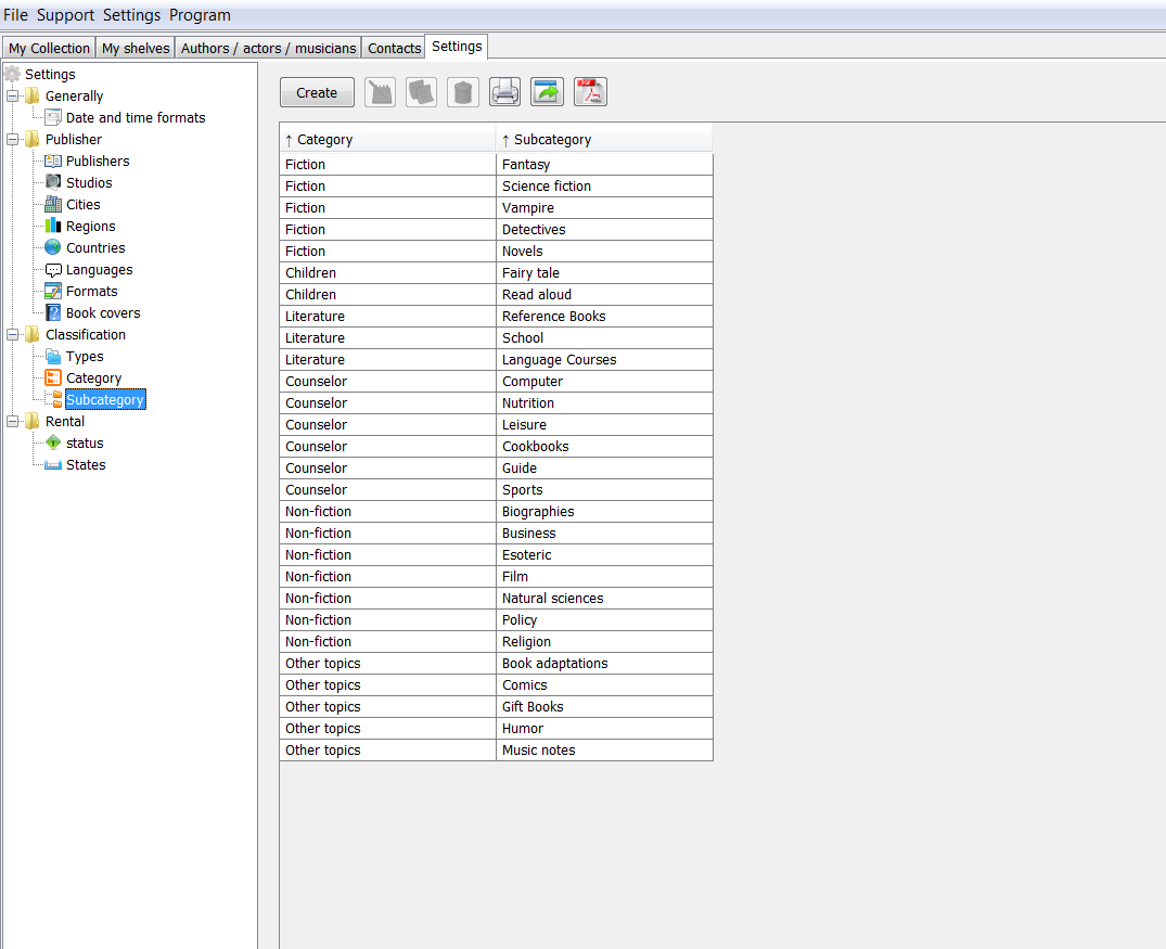 In addition to a manual input of objects the program provides with an import function, which makes possible to import multiple objects in CSV-format, for example, from existing collections of other programs.