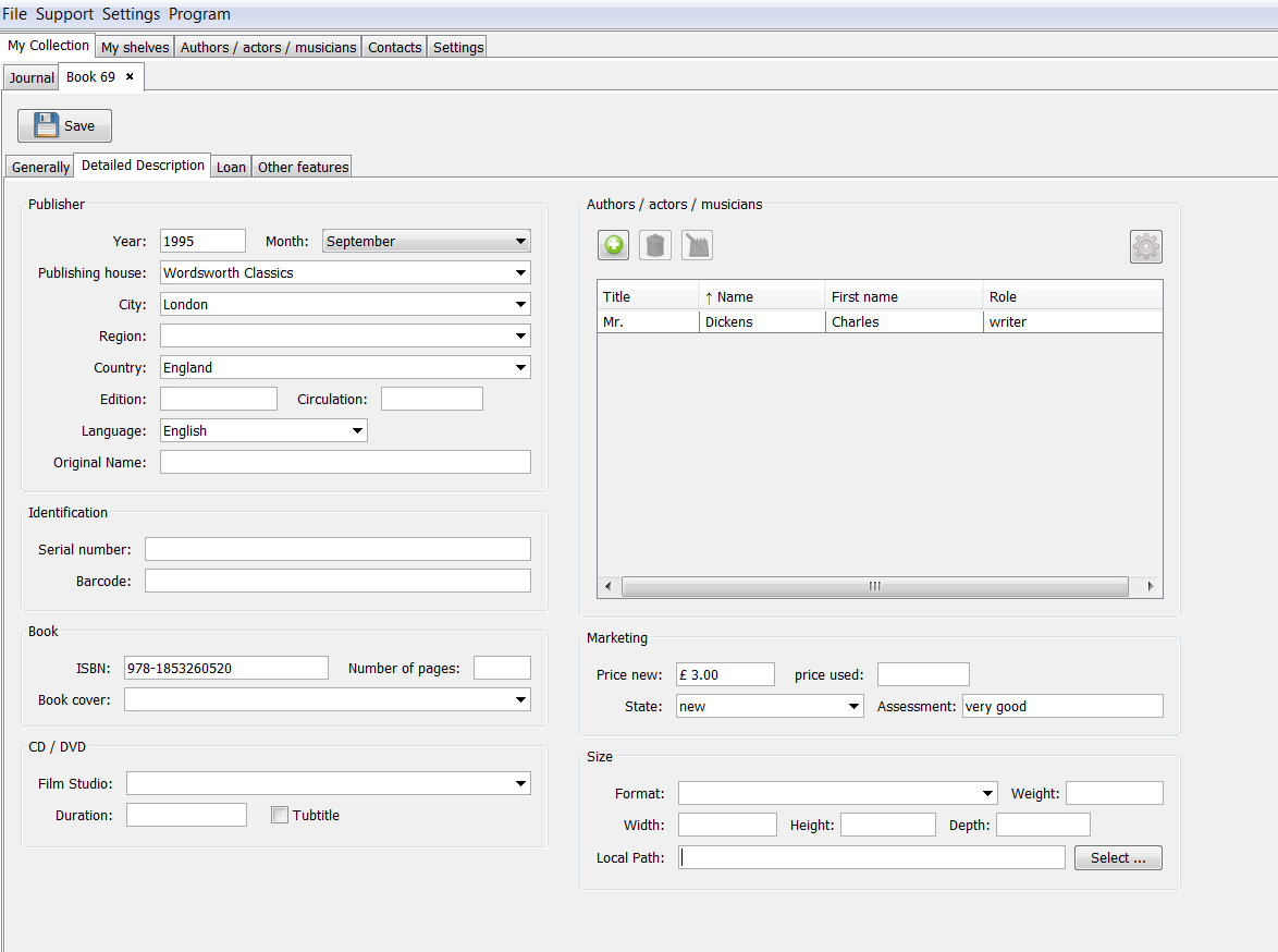 The program “Accounting of Books, CDs and other Collections” provides an excellent support to archive any collection, and is your great assistant, as well as a perfect gift for relatives and friends.